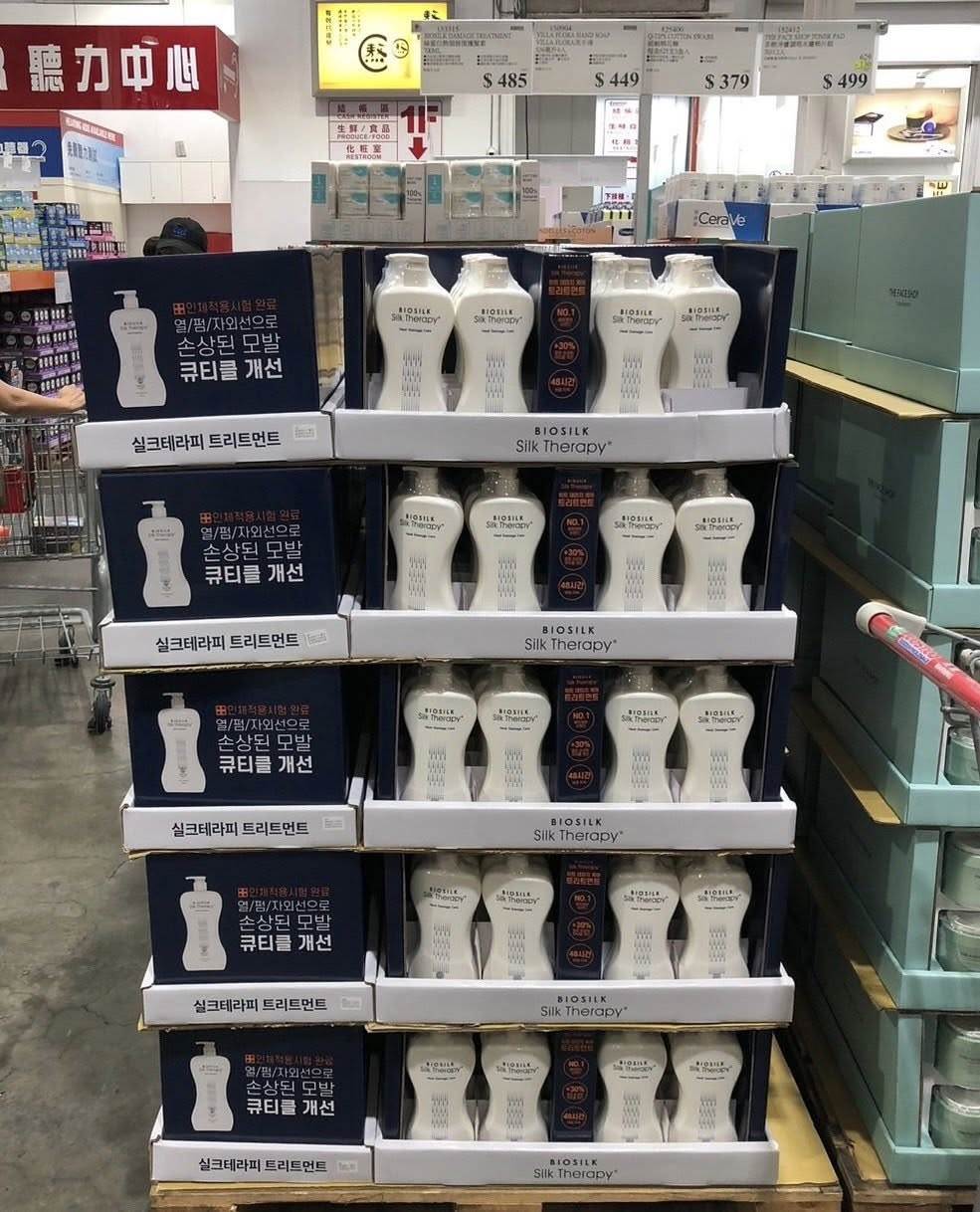 她也補充說明,用了一個禮拜,真的覺得有被驚艷到,因為以往用到相同質地的護髮,都有那種潤完跟沒潤一樣的感覺,出門都要花很多時間整理頭髮,最近早上出門梳一梳就很順,完全不需要額外抹護髮油。比照好市多官網資訊,這款護髮素就是品牌BIOSILK所推出的絲蛋白熱損護髮素,一大罐700毫升賣場價格為485元。