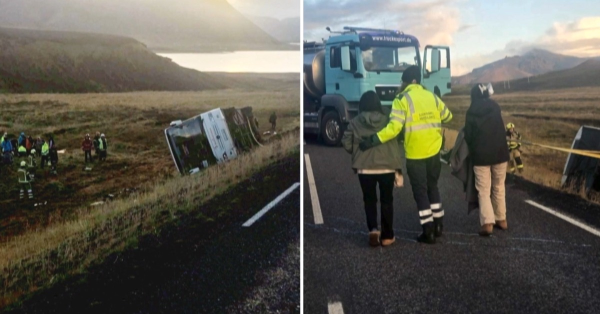 冰島公路上,一輛遊覽車翻覆在公路外側,後來救難人員抵達現場處理,冰島在斯奈山半島行程上發生車禍,根據國外媒體的掌握,事發地點位於斯奈山半島賽麗雅峽灣。