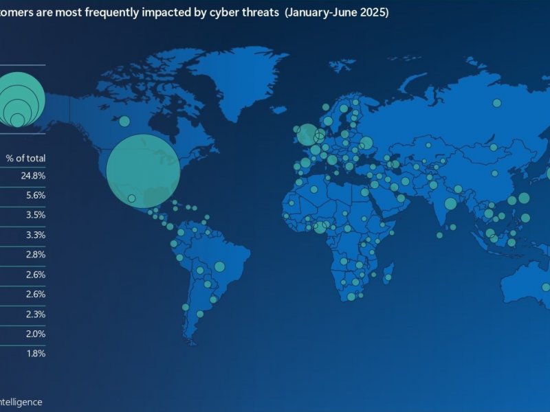 2025 年上半年,台灣客戶遭受網路威脅影響排名全球第十(佔全球總量的 1.8%)。