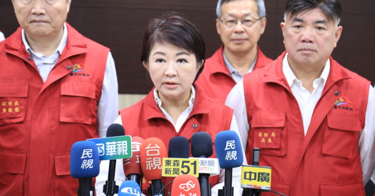 盧秀燕今(12日)受訪回應台中停班課標準。(圖/中央社提供)