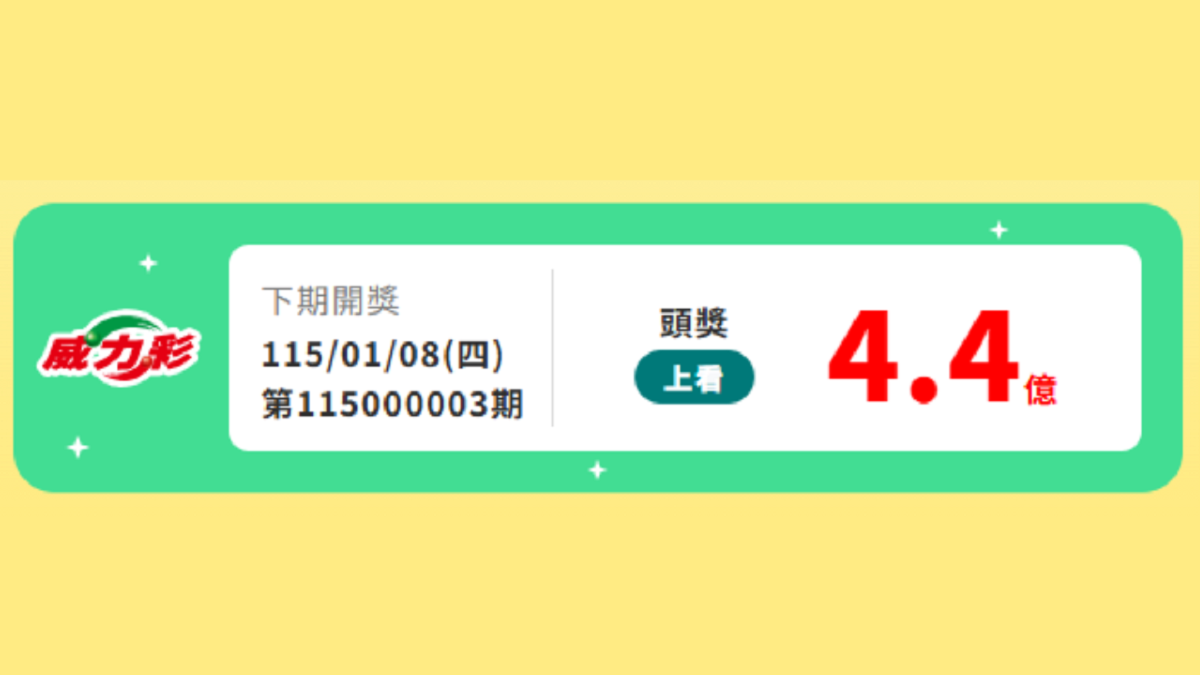 威力彩已連槓20期,而今(8)日晚間將開獎,頭獎上看4.4億元。(封面圖/截自台灣彩券官網)