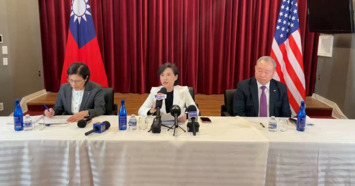 行政院副院長鄭麗君、政務委員楊珍妮及駐美代表俞大㵢今(16日)9點,在駐美代表處正式舉行記者會,針對臺美關稅談判結果向國人報告。鄭麗君開宗明義指出,本次談判成功取得兩個「最優惠待遇」是重大成果。