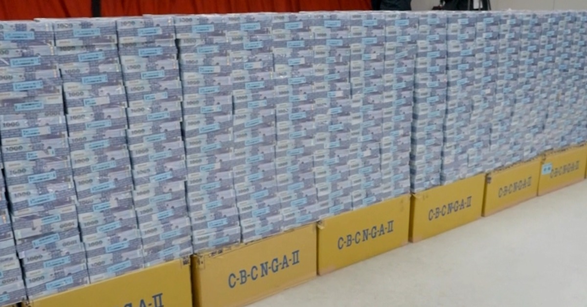 台銀進行15.8億元的現鈔點交,總共1580疊百萬鈔堆積成山。(圖/東森新聞)