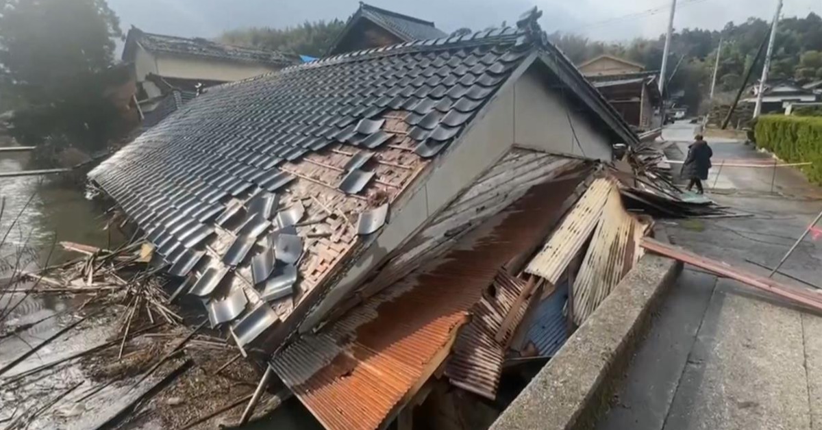 2024年1月1日日本石川縣能登半島發生規模7.6強震,在當時造成多人傷亡。(圖/東森新聞)