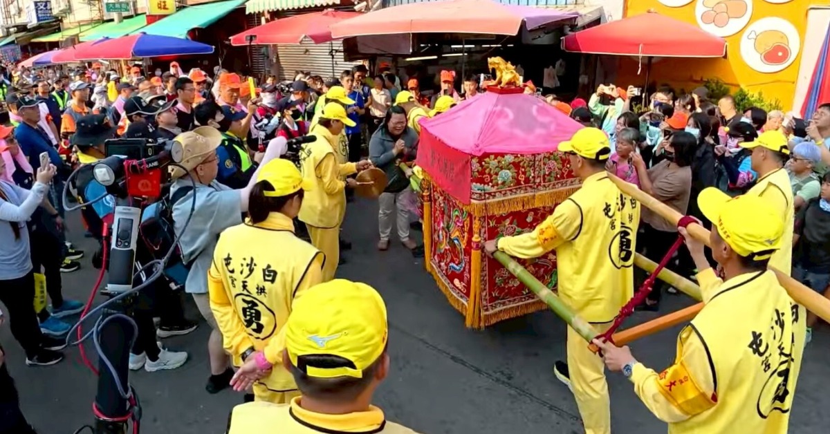 白沙屯媽祖今(14)日凌晨2時再度起駕,持續進香路程。稍早鑾轎進入大肚區後,原本預期將循既定路線行經大肚火車站並前往區公所,未料行進途中鑾轎突然在「大肚公有零售市場」停下,且出現劇烈搖晃、三進三出的情形,最終選擇在現場停駕,讓隨行信眾相當驚訝,也直呼感動。