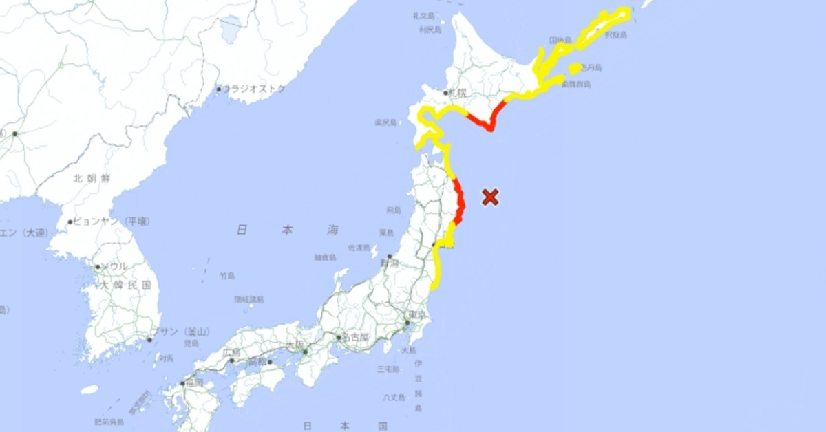 日本在當地時間今(20)日16時53分(台灣時間15時53分)發生芮氏規模7.4強震,震央位於青森縣三陸近海,最大震度來到5強,震源深度僅10公里,屬於極淺層地震,目前氣象廳已對岩手縣、北海道太平洋沿岸中部發布海嘯警報,預估恐有3公尺高的海嘯襲擊,海嘯抵達各地的時間也曝光。