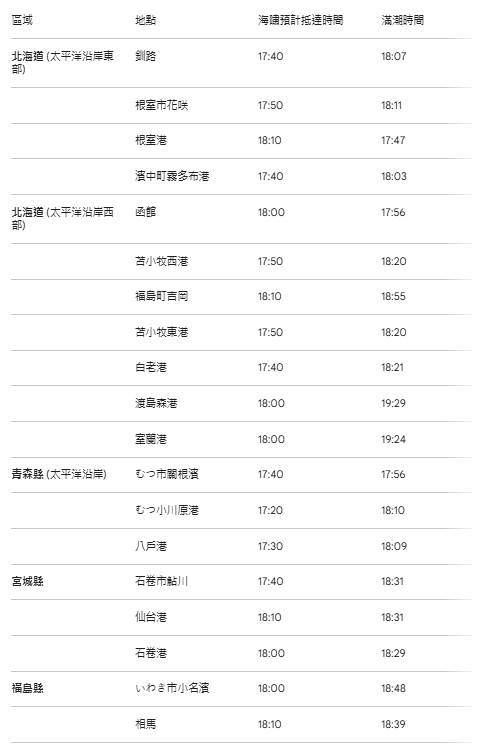 🔴 海嘯警報地區(預估高度 3 公尺)