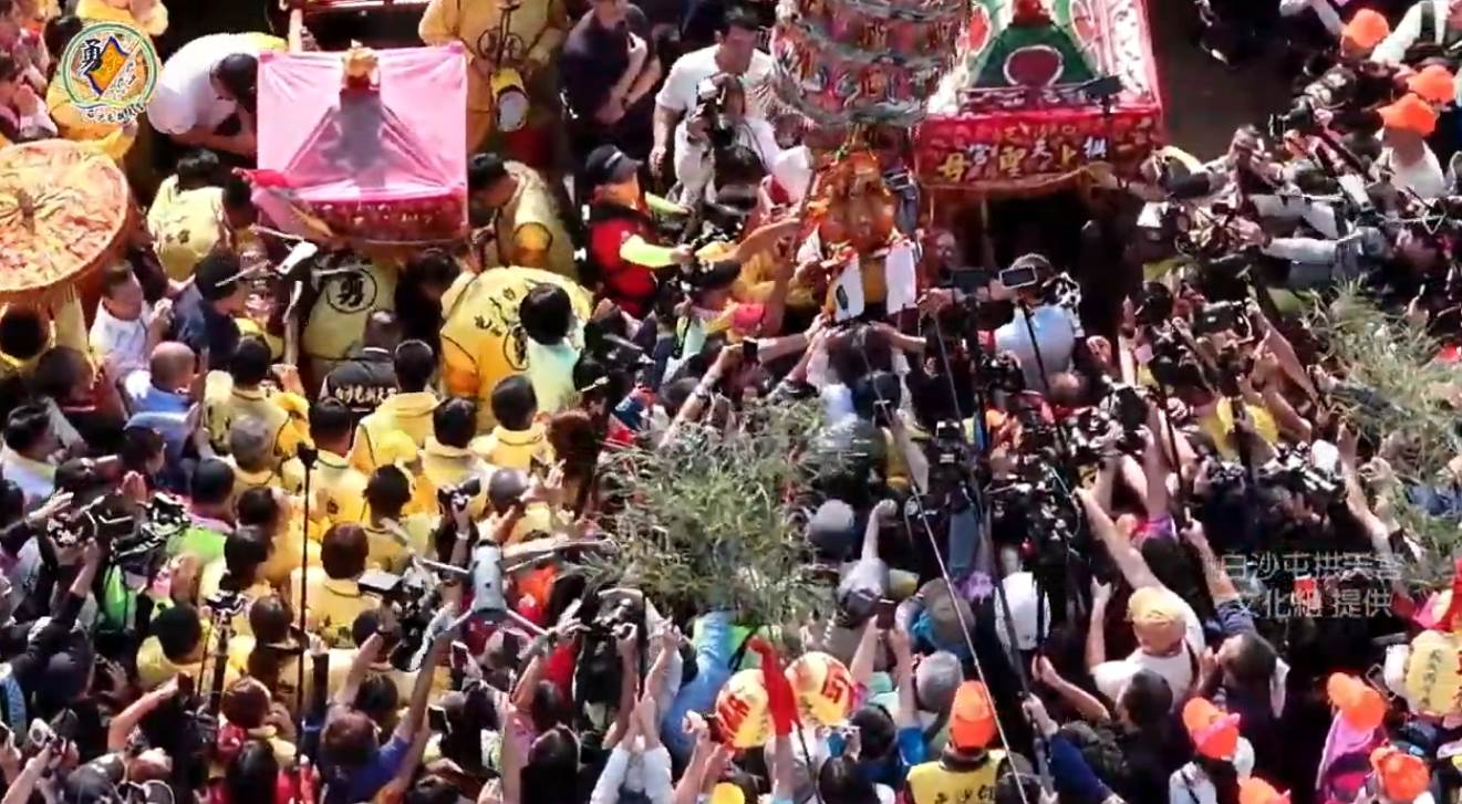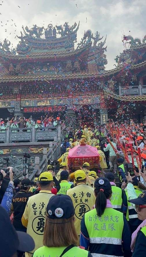 白沙屯媽祖於16時10分入廟,廟方於臉書發文表示,目前已完成安座儀式,不少信眾也齊聚拱天宮,恭迎媽祖回到宮內。